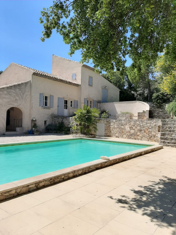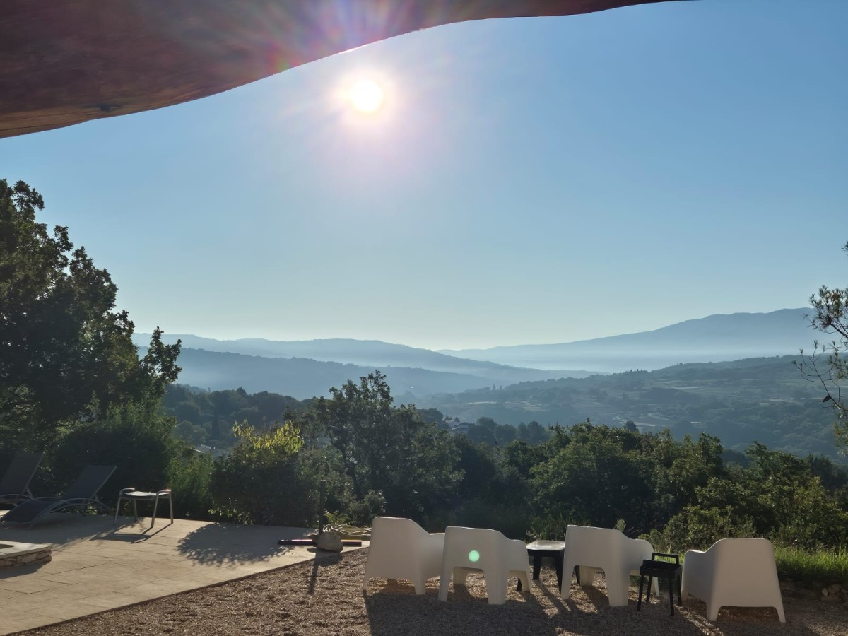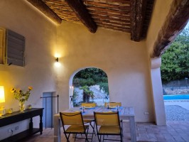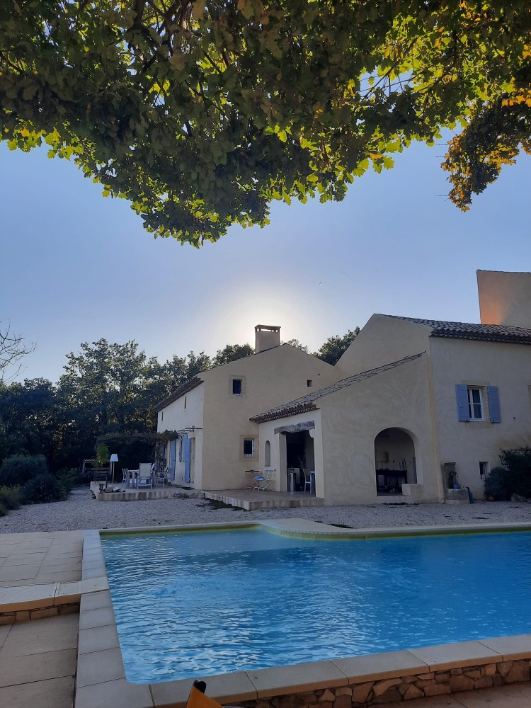 Rondom het huis en het zwembad bevinden zich volop terrassen, waar, afhankelijk van de tijd van de dag, bomen aangename schaduw bieden.